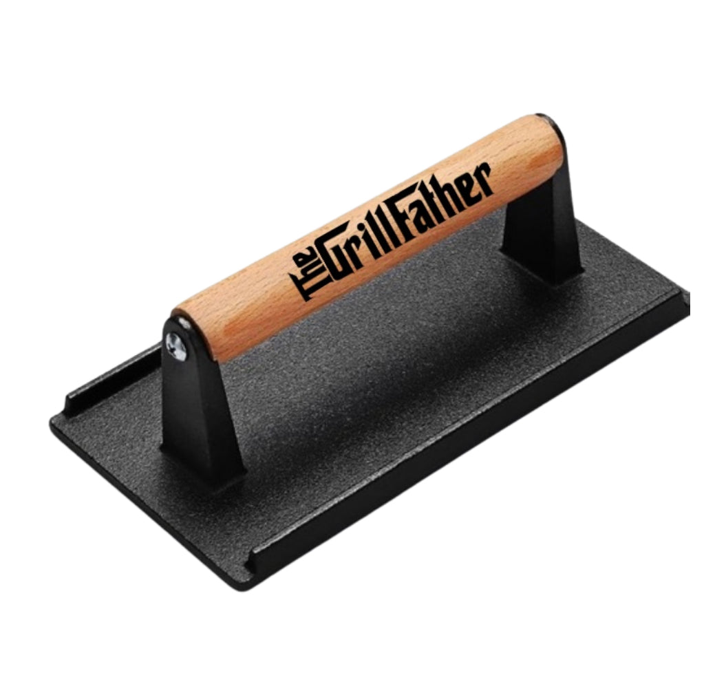 Made from durable materials with a sturdy handle, this press leaves a bold imprint while helping food cook evenly and stay juicy.
